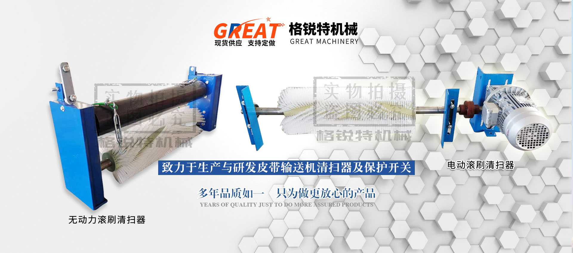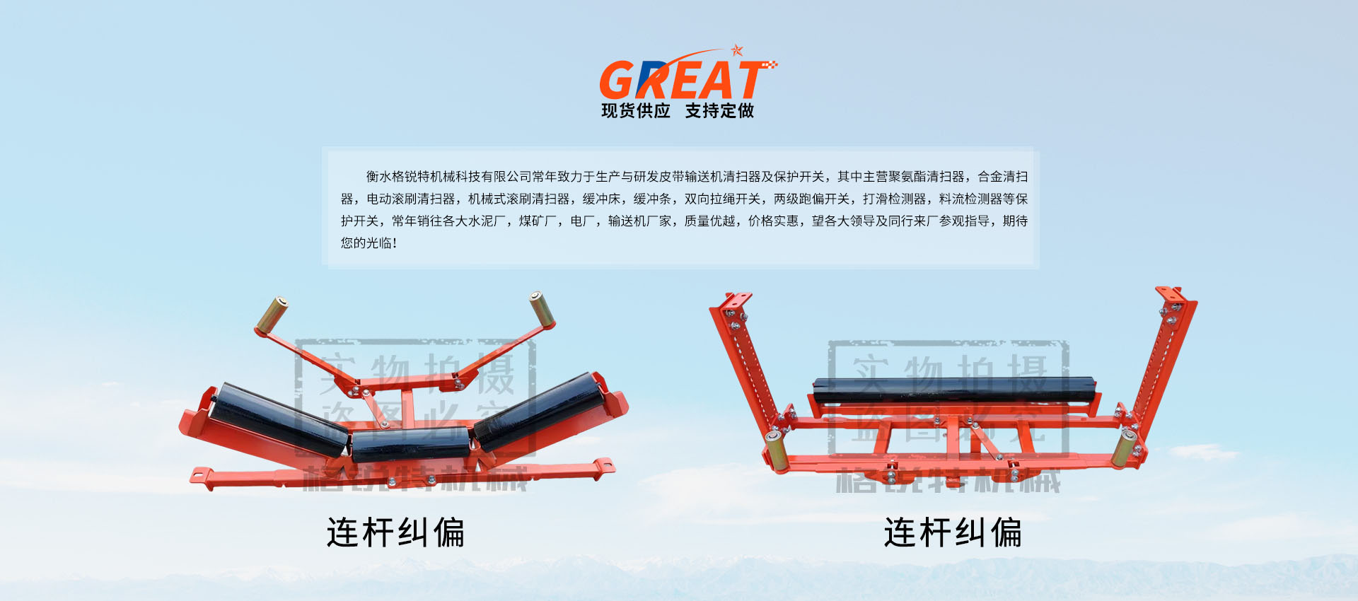衡水格銳特機械科技有限公司常年致力于生產與研發皮帶輸送機清掃器及保護開關,其中主營聚氨酯清掃器,合金清掃器,電動滾刷清掃器,機械式滾刷清掃器,緩沖床,緩沖條,雙向拉繩開關,兩級跑偏開關,打滑檢測器,料流檢測器等保護開關,常年銷往各大水泥廠,煤礦廠,電廠,輸送機廠家,質量優越,價格實惠,望各大領導及同行來廠參觀指導,期待您的光臨!??!